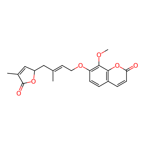 InChI=1S/C20H20O6/c1-12(10-15-11-13(2)20(22)25-15)8-9-24-16-6-4-14-5-7-17(21)26-18(14)19(16)23-3/h4-8,11,15H,9-10H2,1-3H3/b12-8+ |
