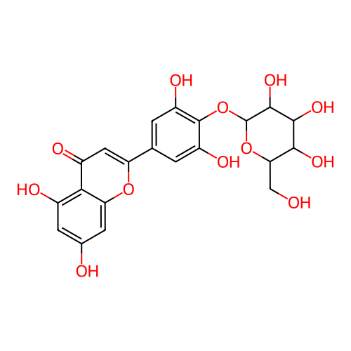 InChI=1S/C21H20O12/c22-6-15-17(28)18(29)19(30)21(32-15)33-20-11(26)1-7(2-12(20)27)13-5-10(25)16-9(24)3-8(23)4-14(16)31-13/h1-5,15,17-19,21-24,26-30H,6H2/t15-,17-,18+,19-,21+/m1/s1 |