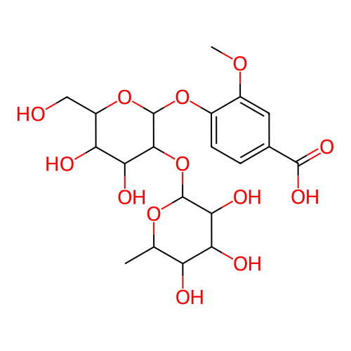COc1cc(C(=O)O)ccc1OC1OC(CO)C(O)C(O)C1OC1OC(C)C(O)C(O)C1O |