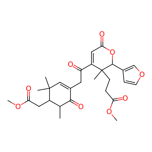 InChI=1S/C28H34O9/c1-16-19(12-23(31)35-6)27(2,3)14-18(25(16)33)11-21(29)20-13-24(32)37-26(17-8-10-36-15-17)28(20,4)9-7-22(30)34-5/h8,10,13-16,19,26H,7,9,11-12H2,1-6H3/t16-,19-,26+,28-/m1/s1 |