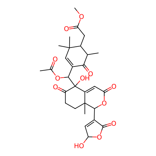 InChI=1S/C29H34O12/c1-13-17(10-20(32)38-6)27(3,4)12-16(23(13)35)25(39-14(2)30)29(37)18-11-22(34)40-24(15-9-21(33)41-26(15)36)28(18,5)8-7-19(29)31/h9,11-13,17,21,24-25,33,37H,7-8,10H2,1-6H3/t13-,17-,21?,24+,25-,28-,29+/m1/s1 |