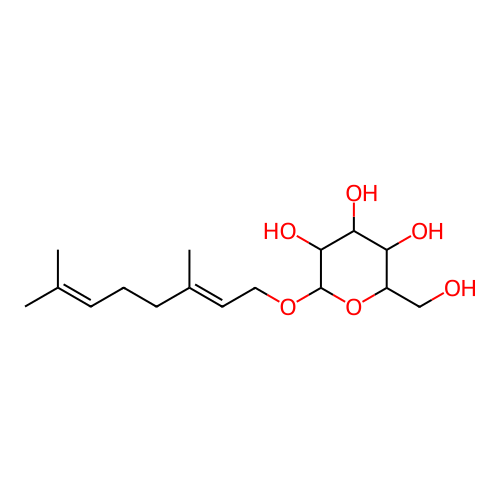 InChI=1S/C16H28O6/c1-10(2)5-4-6-11(3)7-8-21-16-15(20)14(19)13(18)12(9-17)22-16/h5,7,12-20H,4,6,8-9H2,1-3H3/b11-7+/t12-,13-,14+,15-,16-/m1/s1 |