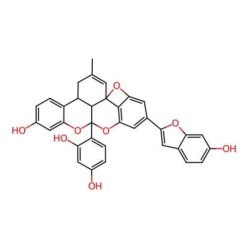 InChI=1S/C34H24O8/c1-16-8-23-22-6-4-21(37)14-28(22)41-34(24-7-5-19(35)12-25(24)38)32(23)33(15-16)31-29(40-33)10-18(11-30(31)42-34)26-9-17-2-3-20(36)13-27(17)39-26/h2-7,9-15,23,32,35-38H,8H2,1H3/t23-,32-,33+,34+/m1/s1 |