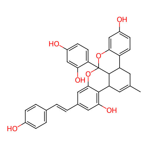 CC1=CC2c3c(O)cc(C=Cc4ccc(O)cc4)cc3OC3(c4ccc(O)cc4O)Oc4cc(O)ccc4C(C1)C23 |
