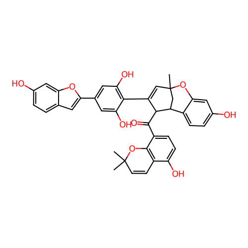 CC1(C)C=Cc2c(O)ccc(C(=O)C3C(c4c(O)cc(-c5cc6ccc(O)cc6o5)cc4O)=CC4(C)CC3c3ccc(O)cc3O4)c2O1 |