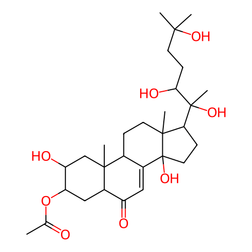 InChI=1S/C29H46O8/c1-16(30)37-22-14-19-20(31)13-18-17(26(19,4)15-21(22)32)7-11-27(5)23(8-12-29(18,27)36)28(6,35)24(33)9-10-25(2,3)34/h13,17,19,21-24,32-36H,7-12,14-15H2,1-6H3/t17-,19-,21-,22+,23-,24+,26+,27+,28+,29+/m0/s1;InChI=1S/C29H46O8/c1-16(30)37-22-14-19-20(31)13-18-17(26(19,4)15-21(22)32)7-11-27(5)23(8-12-29(18,27)36)28(6,35)24(33)9-10-25(2,3)34/h13,17,19,21-24,32-36H,7-12,14-15H2,1-6H3/t17-,19-,21-,22+,23-,24+,26+,27+,28?,29+/m1/s1;InChI=1S/C29H46O8/c1-16(30)37-22-14-19-20(31)13-18-17(26(19,4)15-21(22)32)7-11-27(5)23(8-12-29(18,27)36)28(6,35)24(33)9-10-25(2,3)34/h13,17,19,21-24,32-36H,7-12,14-15H2,1-6H3;InChI=1S/C29H46O8/c1-16(30)37-22-14-19-20(31)13-18-17(26(19,4)15-21(22)32)7-11-27(5)23(8-12-29(18,27)36)28(6,35)24(33)9-10-25(2,3)34/h13,17,19,21-24,32-36H,7-12,14-15H2,1-6H3/t17-,19-,21-,22+,23-,24+,26+,27+,28+,29+/m1/s1 |