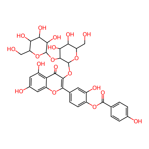 InChI=1S/C34H34O19/c35-10-20-23(41)26(44)28(46)33(50-20)53-31-27(45)24(42)21(11-36)51-34(31)52-30-25(43)22-17(40)8-15(38)9-19(22)48-29(30)13-3-6-18(16(39)7-13)49-32(47)12-1-4-14(37)5-2-12/h1-9,20-21,23-24,26-28,31,33-42,44-46H,10-11H2/t20-,21-,23-,24+,26+,27+,28-,31-,33+,34+/m1/s1 |
