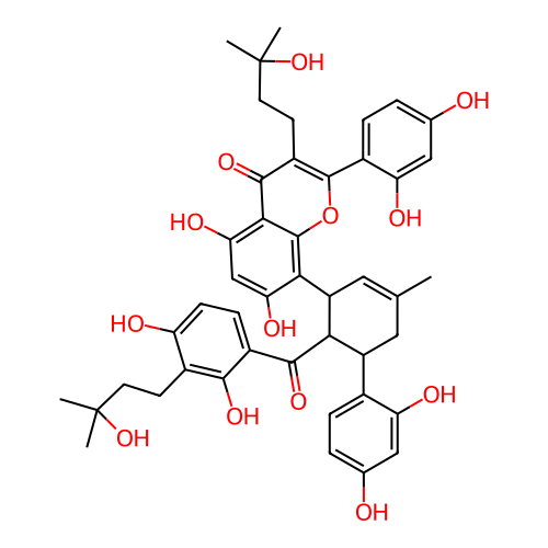 CC1=CC(c2c(O)cc(O)c3c(=O)c(CCC(C)(C)O)c(-c4ccc(O)cc4O)oc23)C(C(=O)c2ccc(O)c(CCC(C)(C)O)c2O)C(c2ccc(O)cc2O)C1 |