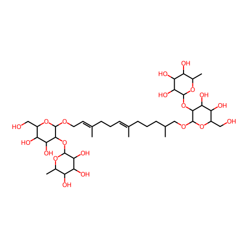 InChI=1S/C39H68O20/c1-17(9-7-11-19(3)16-53-39-35(31(49)27(45)23(15-41)57-39)59-37-33(51)29(47)25(43)21(5)55-37)8-6-10-18(2)12-13-52-38-34(30(48)26(44)22(14-40)56-38)58-36-32(50)28(46)24(42)20(4)54-36/h8,12,19-51H,6-7,9-11,13-16H2,1-5H3/b17-8+,18-12+/t19?,20-,21-,22+,23+,24-,25-,26+,27+,28+,29+,30-,31-,32+,33+,34+,35+,36-,37-,38+,39+/m0/s1 |