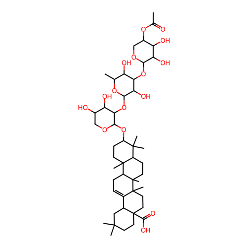 InChI=1S/C48H76O16/c1-23-32(51)37(63-39-35(54)34(53)28(22-59-39)61-24(2)49)36(55)40(60-23)64-38-33(52)27(50)21-58-41(38)62-31-13-14-45(7)29(44(31,5)6)12-15-47(9)30(45)11-10-25-26-20-43(3,4)16-18-48(26,42(56)57)19-17-46(25,47)8/h10,23,26-41,50-55H,11-22H2,1-9H3,(H,56,57)/t23-,26-,27-,28-,29-,30+,31-,32-,33-,34-,35+,36+,37+,38+,39-,40-,41-,45-,46+,47+,48-/m0/s1 |