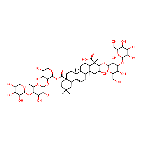 28-(O-beta-D-Xylopyranosyl-(1->4)-O-6-deoxy-alpha-L-mannopyranosyl-(1->2)-alpha-L-arabinopyranosyl) (2beta,3beta,4alpha,16alpha)-3-[(O-beta-D-glucopyranosyl-(1->2)-O-beta-D-glucopyranosyl-(1->2)-beta-D-glucopyranosyl)oxy]-2,16-dihydroxyolean-12-ene-23,28-dioate |