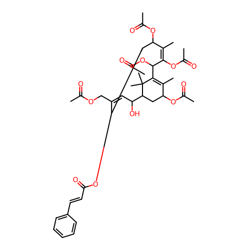 InChI=1S/C39H48O13/c1-21-32(48-24(4)41)18-30-31(45)17-29(20-47-23(3)40)34(52-35(46)16-15-28-13-11-10-12-14-28)19-33(49-25(5)42)22(2)37(50-26(6)43)38(51-27(7)44)36(21)39(30,8)9/h10-17,30-34,38,45H,18-20H2,1-9H3;InChI=1S/C39H48O13/c1-21-32(48-24(4)41)18-30-31(45)17-29(20-47-23(3)40)34(52-35(46)16-15-28-13-11-10-12-14-28)19-33(49-25(5)42)22(2)37(50-26(6)43)38(51-27(7)44)36(21)39(30,8)9/h10-17,30-34,38,45H,18-20H2,1-9H3/b16-15+,29-17+,37-22-/t30-,31-,32-,33-,34-,38+/m0/s1;InChI=1S/C39H48O13/c1-21-32(48-24(4)41)18-30-31(45)17-29(20-47-23(3)40)34(52-35(46)16-15-28-13-11-10-12-14-28)19-33(49-25(5)42)22(2)37(50-26(6)43)38(51-27(7)44)36(21)39(30,8)9/h10-17,30-34,38,45H,18-20H2,1-9H3/b16-15+,29-17-,37-22+ |