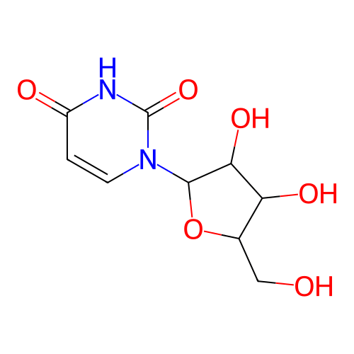 InChI=1S/C9H12N2O6/c12-3-4-6(14)7(15)8(17-4)11-2-1-5(13)10-9(11)16/h1-2,4,6-8,12,14-15H,3H2,(H,10,13,16)/t4-,6-,7-,8-/m0/s1 |