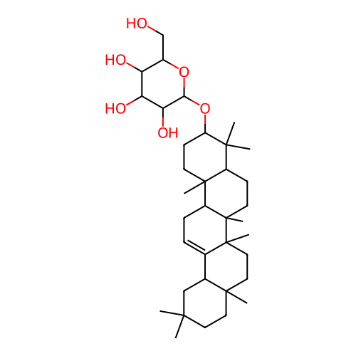 InChI=1S/C36H60O6/c1-31(2)15-16-33(5)17-18-35(7)21(22(33)19-31)9-10-25-34(6)13-12-26(32(3,4)24(34)11-14-36(25,35)8)42-30-29(40)28(39)27(38)23(20-37)41-30/h9,22-30,37-40H,10-20H2,1-8H3/t22-,23+,24-,25+,26-,27+,28-,29+,30-,33+,34-,35+,36+/m0/s1 |