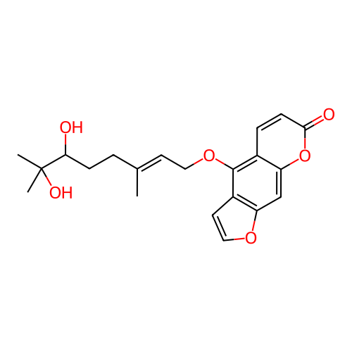 InChI=1S/C21H24O6/c1-13(4-6-18(22)21(2,3)24)8-10-26-20-14-5-7-19(23)27-17(14)12-16-15(20)9-11-25-16/h5,7-9,11-12,18,22,24H,4,6,10H2,1-3H3/b13-8+/t18-/m1/s1 |