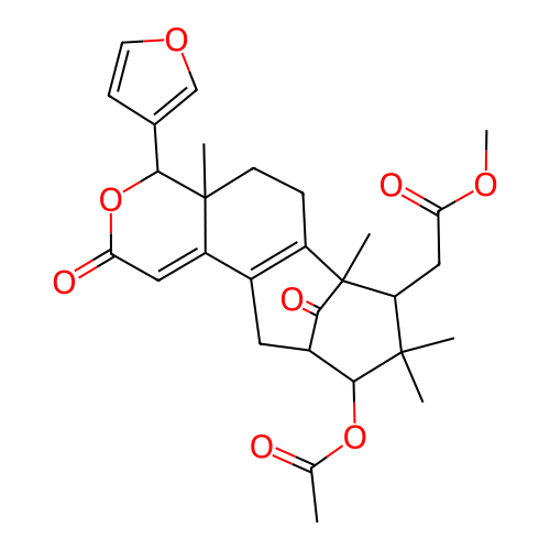 InChI=1S/C29H34O8/c1-15(30)36-26-18-11-17-19(29(5,24(18)33)21(27(26,2)3)13-22(31)34-6)7-9-28(4)20(17)12-23(32)37-25(28)16-8-10-35-14-16/h8,10,12,14,18,21,25-26H,7,9,11,13H2,1-6H3/t18-,21+,25+,26-,28-,29-/m1/s1 |