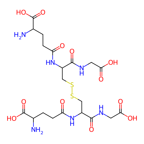 InChI=1S/C20H32N6O12S2/c21-9(19(35)36)1-3-13(27)25-11(17(33)23-5-15(29)30)7-39-40-8-12(18(34)24-6-16(31)32)26-14(28)4-2-10(22)20(37)38/h9-12H,1-8,21-22H2,(H,23,33)(H,24,34)(H,25,27)(H,26,28)(H,29,30)(H,31,32)(H,35,36)(H,37,38)/t9-,10-,11-,12-/m0/s1 |