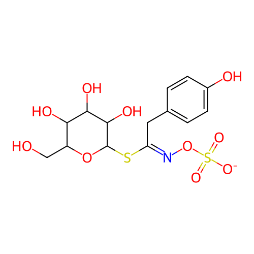 O=S(=O)([O-])ON=C(Cc1ccc(O)cc1)SC1OC(CO)C(O)C(O)C1O |