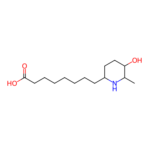 InChI=1S/C14H27NO3/c1-11-13(16)10-9-12(15-11)7-5-3-2-4-6-8-14(17)18/h11-13,15-16H,2-10H2,1H3,(H,17,18)/t11-,12+,13-/m0/s1 |