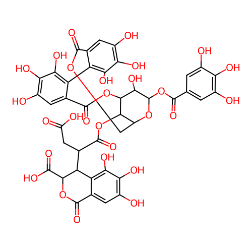 InChI=1S/C41H32O28/c42-13-1-8(2-14(43)24(13)49)36(59)69-41-31(56)34-32(66-40(63)12(6-19(47)48)23-22-11(5-17(46)27(52)30(22)55)38(61)67-33(23)35(57)58)18(65-41)7-64-37(60)9-3-15(44)25(50)28(53)20(9)21-10(39(62)68-34)4-16(45)26(51)29(21)54/h1-5,12,18,23,31-34,41-46,49-56H,6-7H2,(H,47,48)(H,57,58) |