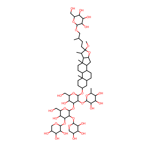 InChI=1S/C62H104O31/c1-23(20-81-54-48(78)45(75)41(71)34(17-63)86-54)9-14-62(80-6)24(2)37-33(93-62)16-30-28-8-7-26-15-27(10-12-60(26,4)29(28)11-13-61(30,37)5)85-58-52(92-57-49(79)44(74)38(68)25(3)84-57)51(43(73)35(18-64)87-58)90-59-53(91-56-47(77)40(70)32(67)22-83-56)50(42(72)36(19-65)88-59)89-55-46(76)39(69)31(66)21-82-55/h23-59,63-79H,7-22H2,1-6H3/t23-,24+,25+,26+,27+,28+,29+,30+,31-,32-,33+,34-,35-,36-,37+,38+,39+,40+,41-,42-,43-,44-,45+,46-,47-,48-,49-,50+,51+,52-,53-,54-,55+,56+,57+,58-,59+,60+,61+,62-/m1/s1 |