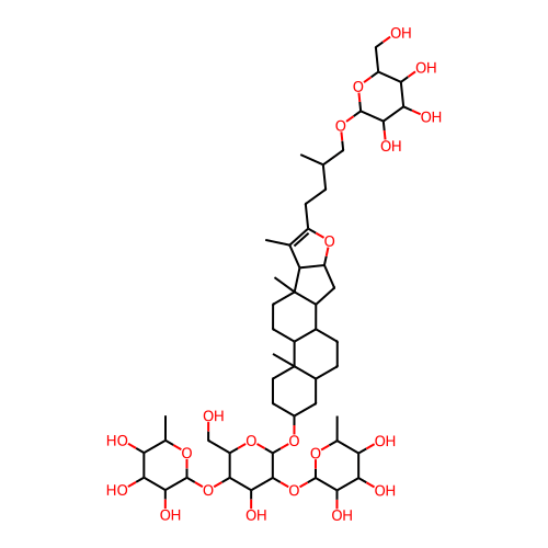 InChI=1S/C51H84O21/c1-20(19-64-46-40(60)39(59)36(56)31(17-52)69-46)7-10-29-21(2)33-30(68-29)16-28-26-9-8-24-15-25(11-13-50(24,5)27(26)12-14-51(28,33)6)67-49-45(72-48-42(62)38(58)35(55)23(4)66-48)43(63)44(32(18-53)70-49)71-47-41(61)37(57)34(54)22(3)65-47/h20,22-28,30-49,52-63H,7-19H2,1-6H3/t20-,22-,23-,24+,25-,26+,27-,28-,30-,31+,32+,33-,34-,35-,36+,37+,38+,39-,40+,41+,42+,43-,44+,45+,46+,47-,48-,49+,50-,51-/m0/s1 |