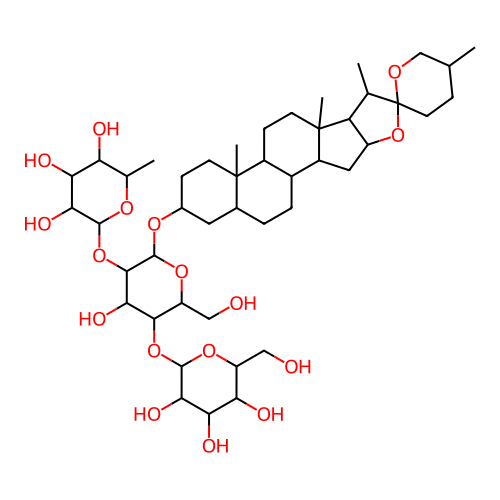 InChI=1S/C45H74O17/c1-19-8-13-45(55-18-19)20(2)30-27(62-45)15-26-24-7-6-22-14-23(9-11-43(22,4)25(24)10-12-44(26,30)5)57-42-39(61-40-35(52)33(50)31(48)21(3)56-40)37(54)38(29(17-47)59-42)60-41-36(53)34(51)32(49)28(16-46)58-41/h19-42,46-54H,6-18H2,1-5H3/t19-,20-,21-,22+,23-,24+,25-,26-,27-,28+,29+,30-,31-,32+,33+,34-,35+,36+,37-,38-,39+,40-,41-,42+,43-,44-,45+/m0/s1 |