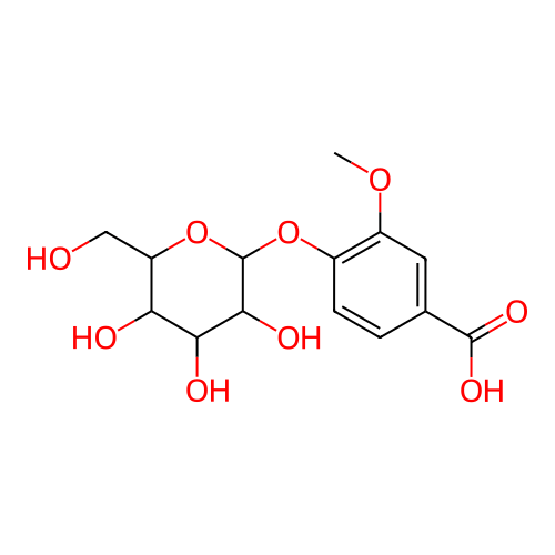 InChI=1S/C14H18O9/c1-21-8-4-6(13(19)20)2-3-7(8)22-14-12(18)11(17)10(16)9(5-15)23-14/h2-4,9-12,14-18H,5H2,1H3,(H,19,20)/t9-,10-,11+,12-,14-/m1/s1 |
