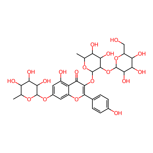 InChI=1S/C33H40O19/c1-10-19(37)23(41)26(44)31(46-10)48-14-7-15(36)18-16(8-14)49-28(12-3-5-13(35)6-4-12)29(22(18)40)51-33-30(25(43)20(38)11(2)47-33)52-32-27(45)24(42)21(39)17(9-34)50-32/h3-8,10-11,17,19-21,23-27,30-39,41-45H,9H2,1-2H3/t10-,11-,17+,19-,20-,21+,23+,24-,25+,26+,27+,30+,31-,32-,33-/m0/s1 |