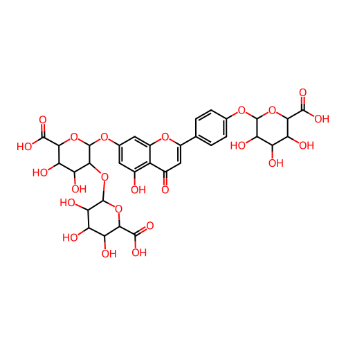 InChI=1S/C33H34O23/c34-11-5-10(51-33-27(21(41)20(40)26(55-33)30(48)49)56-32-23(43)17(37)19(39)25(54-32)29(46)47)6-14-15(11)12(35)7-13(52-14)8-1-3-9(4-2-8)50-31-22(42)16(36)18(38)24(53-31)28(44)45/h1-7,16-27,31-34,36-43H,(H,44,45)(H,46,47)(H,48,49)/t16-,17-,18-,19-,20-,21-,22+,23+,24-,25-,26-,27+,31+,32-,33+/m0/s1 |