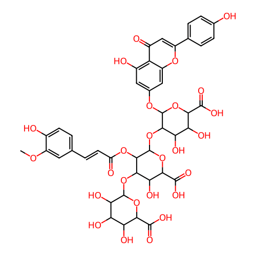 InChI=1S/C43H42O26/c1-61-22-10-14(2-8-18(22)45)3-9-24(48)64-37-32(65-41-30(53)26(49)27(50)33(66-41)38(55)56)31(54)35(40(59)60)68-43(37)69-36-29(52)28(51)34(39(57)58)67-42(36)62-17-11-19(46)25-20(47)13-21(63-23(25)12-17)15-4-6-16(44)7-5-15/h2-13,26-37,41-46,49-54H,1H3,(H,55,56)(H,57,58)(H,59,60)/b9-3+/t26-,27-,28-,29-,30+,31-,32-,33-,34-,35-,36+,37+,41+,42+,43-/m0/s1 |