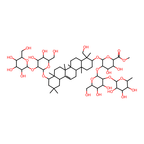 InChI=1S/C61H100O28/c1-24-34(66)38(70)44(76)51(80-24)87-48-41(73)37(69)29(22-64)83-54(48)89-49-43(75)42(74)46(50(78)79-9)86-55(49)84-32-13-14-58(5)30(59(32,6)23-65)12-15-61(8)31(58)11-10-25-26-18-56(2,3)19-33(57(26,4)16-17-60(25,61)7)85-53-47(40(72)36(68)28(21-63)82-53)88-52-45(77)39(71)35(67)27(20-62)81-52/h10,24,26-49,51-55,62-77H,11-23H2,1-9H3/t24-,26-,27+,28+,29+,30+,31+,32-,33+,34-,35+,36+,37-,38+,39-,40-,41-,42-,43-,44+,45+,46-,47+,48+,49+,51-,52-,53-,54-,55+,57+,58-,59+,60+,61+/m0/s1 |
