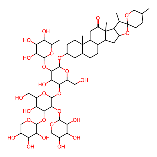 InChI=1S/C55H88O26/c1-20-8-11-55(72-17-20)21(2)34-30(81-55)13-27-25-7-6-23-12-24(9-10-53(23,4)26(25)14-33(60)54(27,34)5)74-51-46(79-50-42(68)39(65)35(61)22(3)73-50)43(69)44(32(16-57)76-51)77-52-47(80-49-41(67)37(63)29(59)19-71-49)45(38(64)31(15-56)75-52)78-48-40(66)36(62)28(58)18-70-48/h20-32,34-52,56-59,61-69H,6-19H2,1-5H3/t20?,21-,22-,23-,24-,25+,26-,27-,28+,29+,30-,31+,32+,34-,35-,36-,37-,38+,39+,40+,41+,42+,43-,44-,45-,46+,47+,48-,49-,50-,51+,52-,53-,54+,55+/m0/s1 |
