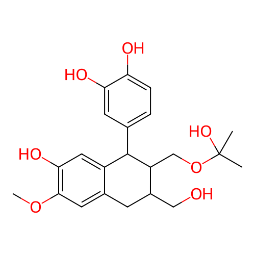 InChI=1S/C22H28O7/c1-22(2,27)29-11-16-14(10-23)6-13-8-20(28-3)19(26)9-15(13)21(16)12-4-5-17(24)18(25)7-12/h4-5,7-9,14,16,21,23-27H,6,10-11H2,1-3H3/t14-,16-,21-/m0/s1 |