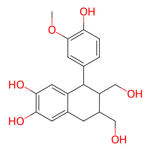 InChI=1S/C19H22O6/c1-25-18-6-10(2-3-15(18)22)19-13-7-17(24)16(23)5-11(13)4-12(8-20)14(19)9-21/h2-3,5-7,12,14,19-24H,4,8-9H2,1H3/t12-,14-,19-/m0/s1;InChI=1S/C19H22O6/c1-25-18-6-10(2-3-15(18)22)19-13-7-17(24)16(23)5-11(13)4-12(8-20)14(19)9-21/h2-3,5-7,12,14,19-24H,4,8-9H2,1H3/t12-,14-,19-/m1/s1;InChI=1S/C19H22O6/c1-25-18-6-10(2-3-15(18)22)19-13-7-17(24)16(23)5-11(13)4-12(8-20)14(19)9-21/h2-3,5-7,12,14,19-24H,4,8-9H2,1H3 |