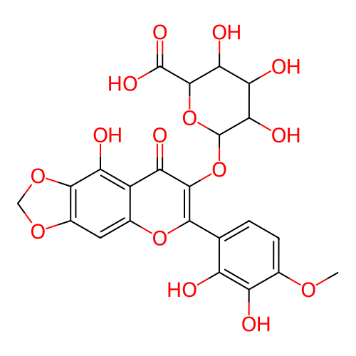 InChI=1S/C23H20O15/c1-33-7-3-2-6(11(24)12(7)25)18-20(37-23-17(30)15(28)16(29)21(38-23)22(31)32)14(27)10-8(36-18)4-9-19(13(10)26)35-5-34-9/h2-4,15-17,21,23-26,28-30H,5H2,1H3,(H,31,32)/t15-,16-,17+,21-,23+/m0/s1 |