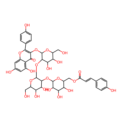 InChI=1S/C42H46O23/c43-13-23-29(51)34(56)39(41(60-23)63-37-31(53)27-21(48)11-20(47)12-22(27)59-36(37)17-4-8-19(46)9-5-17)65-42-38(33(55)28(50)24(14-44)61-42)64-40-35(57)32(54)30(52)25(62-40)15-58-26(49)10-3-16-1-6-18(45)7-2-16/h1-12,23-25,28-30,32-35,38-48,50-52,54-57H,13-15H2/b10-3+/t23-,24-,25-,28-,29-,30-,32+,33+,34+,35-,38-,39-,40+,41+,42+/m1/s1 |