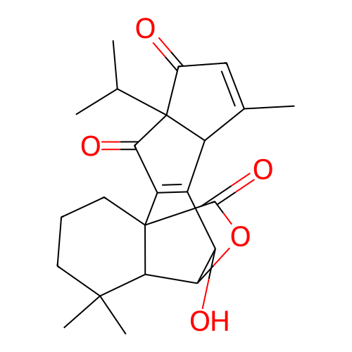 InChI=1S/C23H28O5/c1-10(2)23-12(24)9-11(3)14(23)13-15(19(23)26)22-8-6-7-21(4,5)18(22)17(16(13)25)28-20(22)27/h9-10,14,16-18,25H,6-8H2,1-5H3/t14-,16+,17-,18+,22+,23-/m1/s1 |