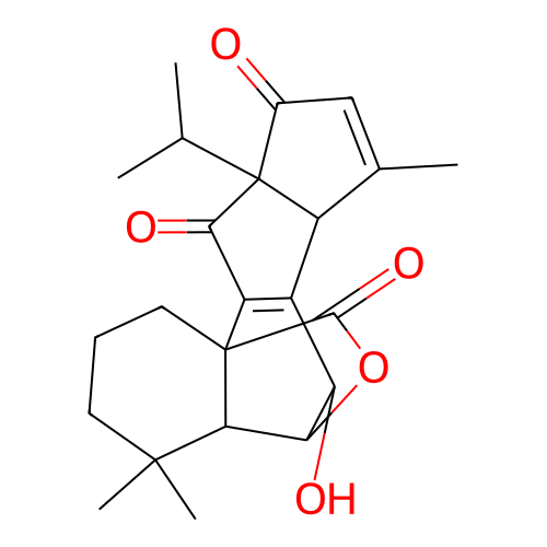 InChI=1S/C23H28O5/c1-10(2)23-12(24)9-11(3)14(23)13-15(19(23)26)22-8-6-7-21(4,5)18(22)17(16(13)25)28-20(22)27/h9-10,14,16-18,25H,6-8H2,1-5H3/t14-,16-,17-,18+,22+,23-/m1/s1 |