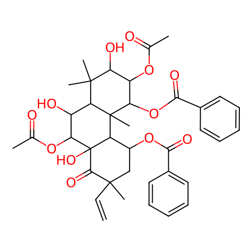 InChI=1S/C38H44O12/c1-8-36(6)19-24(49-32(43)22-15-11-9-12-16-22)27-37(7)28(25(41)30(48-21(3)40)38(27,46)34(36)45)35(4,5)29(42)26(47-20(2)39)31(37)50-33(44)23-17-13-10-14-18-23/h8-18,24-31,41-42,46H,1,19H2,2-7H3/t24-,25+,26+,27-,28+,29-,30-,31+,36+,37-,38-/m1/s1 |