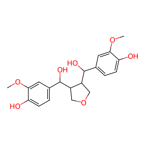 InChI=1S/C20H24O7/c1-25-17-7-11(3-5-15(17)21)19(23)13-9-27-10-14(13)20(24)12-4-6-16(22)18(8-12)26-2/h3-8,13-14,19-24H,9-10H2,1-2H3 |