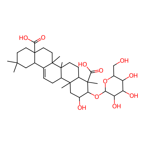 InChI=1S/C36H56O11/c1-31(2)11-13-36(30(44)45)14-12-33(4)18(19(36)15-31)7-8-22-32(3)16-20(38)27(35(6,29(42)43)23(32)9-10-34(22,33)5)47-28-26(41)25(40)24(39)21(17-37)46-28/h7,19-28,37-41H,8-17H2,1-6H3,(H,42,43)(H,44,45)/t19-,20+,21-,22-,23?,24-,25+,26-,27+,28+,32-,33-,34-,35?,36+/m1/s1 |