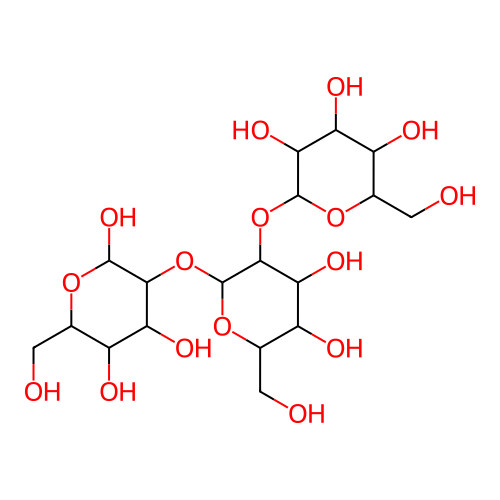 InChI=1S/C18H32O16/c19-1-4-8(23)11(26)14(16(29)30-4)33-18-15(12(27)9(24)6(3-21)32-18)34-17-13(28)10(25)7(22)5(2-20)31-17/h4-29H,1-3H2/t4-,5-,6-,7-,8-,9-,10+,11+,12+,13-,14-,15-,16-,17+,18+/m1/s1 |