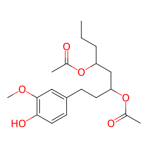 CCCC(CC(CCc1ccc(O)c(OC)c1)OC(C)=O)OC(C)=O |