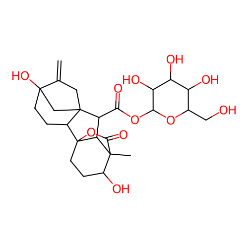 InChI=1S/C25H34O11/c1-10-7-23-9-24(10,33)5-3-12(23)25-6-4-13(27)22(2,21(32)36-25)18(25)14(23)19(31)35-20-17(30)16(29)15(28)11(8-26)34-20/h11-18,20,26-30,33H,1,3-9H2,2H3/t11-,12-,13+,14-,15-,16+,17-,18-,20+,22-,23+,24+,25-/m1/s1 |