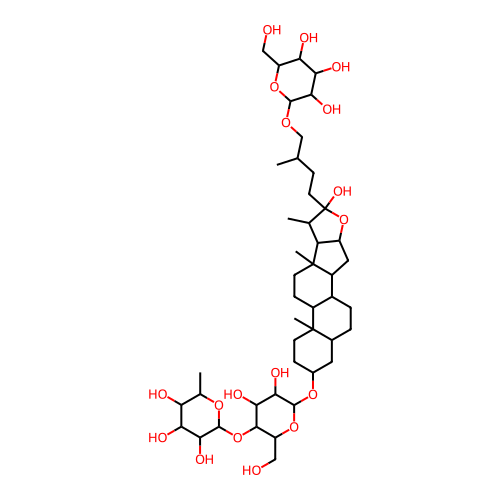InChI=1S/C45H76O18/c1-19(18-57-40-36(53)34(51)32(49)28(16-46)60-40)8-13-45(56)20(2)30-27(63-45)15-26-24-7-6-22-14-23(9-11-43(22,4)25(24)10-12-44(26,30)5)59-42-38(55)35(52)39(29(17-47)61-42)62-41-37(54)33(50)31(48)21(3)58-41/h19-42,46-56H,6-18H2,1-5H3/t19-,20-,21-,22+,23-,24+,25-,26-,27-,28+,29+,30-,31-,32+,33+,34-,35+,36+,37+,38+,39+,40+,41-,42+,43-,44-,45+/m0/s1 |