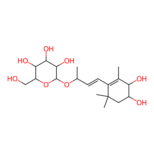 InChI=1S/C19H32O8/c1-9(26-18-17(25)16(24)15(23)13(8-20)27-18)5-6-11-10(2)14(22)12(21)7-19(11,3)4/h5-6,9,12-18,20-25H,7-8H2,1-4H3/b6-5+/t9-,12+,13-,14-,15-,16+,17-,18-/m1/s1 |