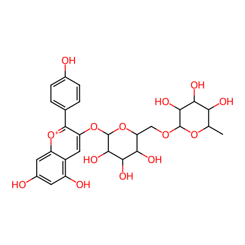 InChI=1S/C27H30O14/c1-10-19(31)21(33)23(35)26(38-10)37-9-18-20(32)22(34)24(36)27(41-18)40-17-8-14-15(30)6-13(29)7-16(14)39-25(17)11-2-4-12(28)5-3-11/h2-8,10,18-24,26-27,31-36H,9H2,1H3,(H2-,28,29,30)/p+1/t10-,18+,19-,20+,21+,22-,23+,24+,26+,27+/m0/s1 |