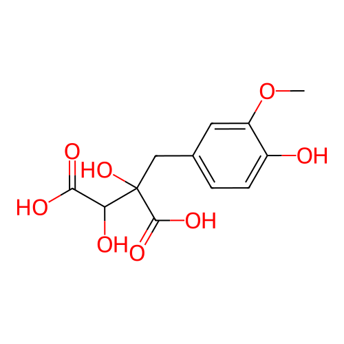 InChI=1S/C12H14O8/c1-20-8-4-6(2-3-7(8)13)5-12(19,11(17)18)9(14)10(15)16/h2-4,9,13-14,19H,5H2,1H3,(H,15,16)(H,17,18)/t9-,12-/m1/s1 |