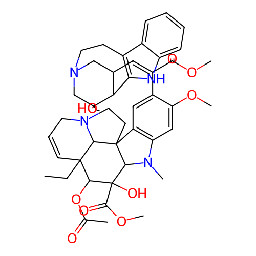 InChI=1S/C46H56N4O9/c1-8-43-16-12-18-50-20-17-45(39(43)50)32-22-30(35(56-5)23-34(32)48(4)40(45)46(55,42(53)58-7)41(43)59-26(3)51)31(38(52)57-6)21-27-24-49-19-15-29-28-13-10-11-14-33(28)47-37(29)36(27)44(54,9-2)25-49/h10-14,16,21-23,27,36,39-41,47,54-55H,8-9,15,17-20,24-25H2,1-7H3/b31-21- |